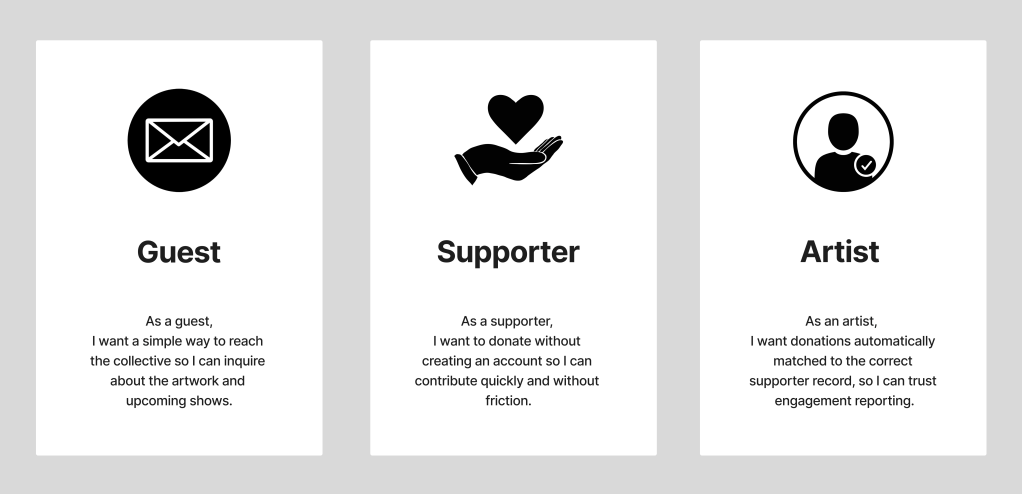 The collective needed a single system that could showcase artwork publicly while managing artists, supporters, and donations in one place.